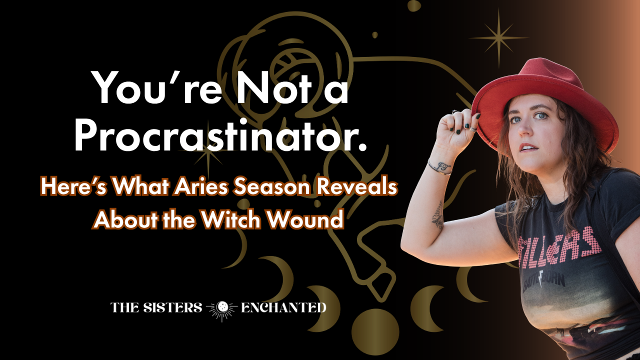 Not at all, though Aries season and the language of astrology frame this particular episode. The pattern of inspired idea, fear of visibility, inaction, and self-blame is something Sara observed in her work as an educator with adults and children with learning differences long before The Sisters Enchanted. The witch wound is a collective pattern that shows up across women’s lives regardless of whether they identify as spiritual or witchy.