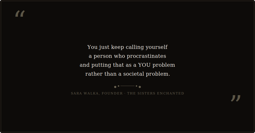 And naming it as procrastination keeps the wound invisible. It turns a societal and ancestral pattern into a personal failing, which makes it much harder to actually move through.
